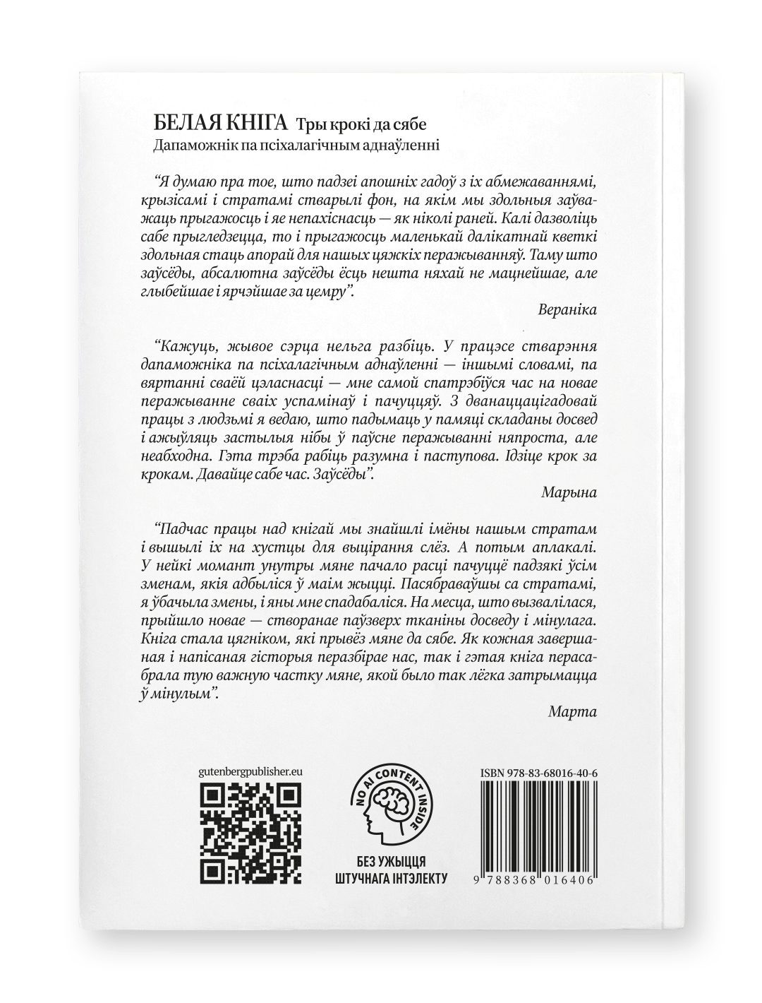 Marta Skuharava pracuje w podejściu integracyjnym. W ostatnich latach regularnie prowadzi w Warszawie grupy wsparcia dla Białorusinów i Białorusinek, pomagając im w procesie adaptacji. „Jak się okazało, najprostsze i najzrozumialsze rzeczy regenerują i uzdrawiają nas wszystkich, działając uniwersalnie dla każdego — na przykład oddech, sen czy uściski. Dlatego nasza prosta, szczera rozmowa ze sobą nawzajem i z czytelnikami stała się uzdrawiająca także dla nas, autorek. Wierzymy, że Wy również staniecie się uczestnikami tej rozmowy, co pomoże Wam na nowo poskładać życiowe sensy i odnaleźć oparcie”.