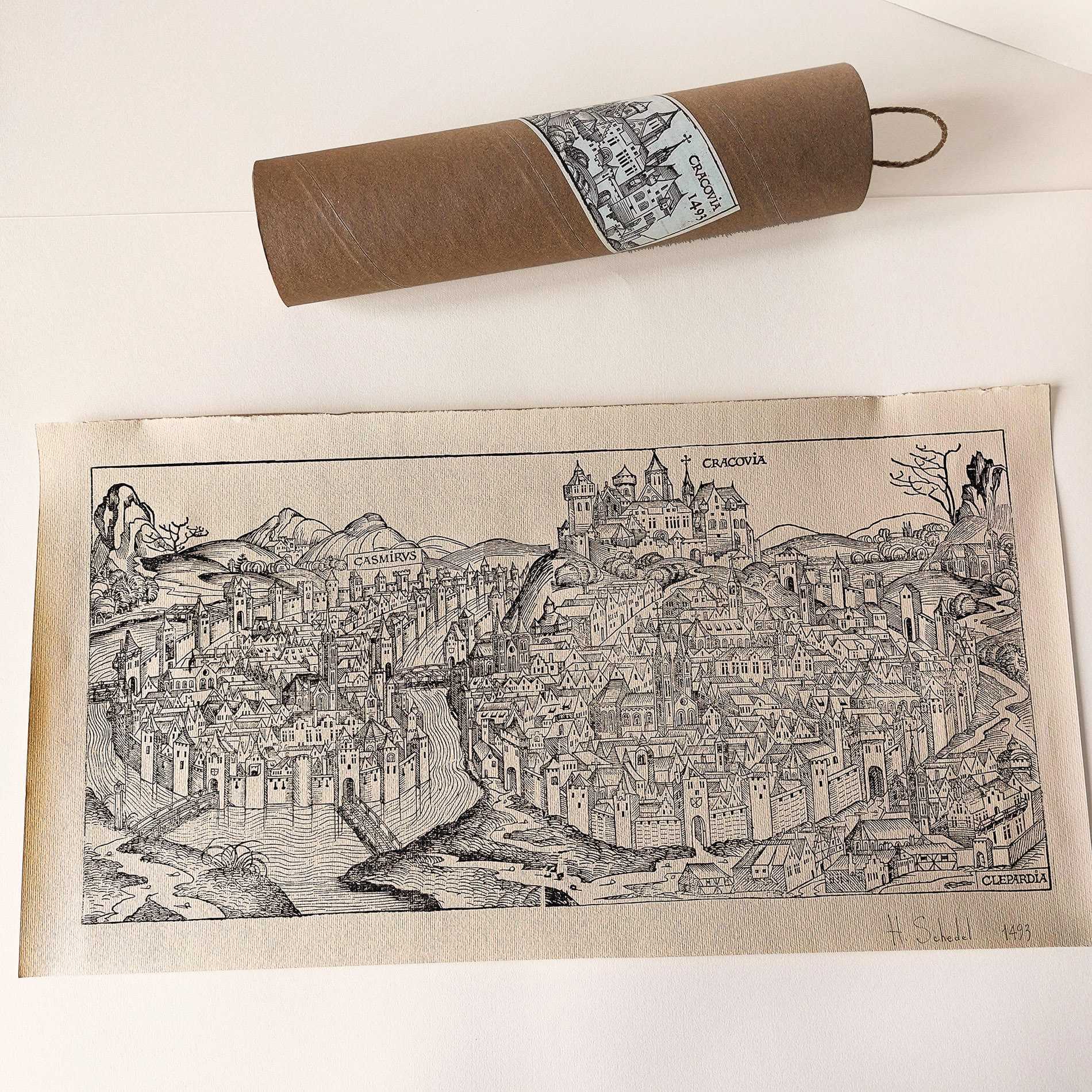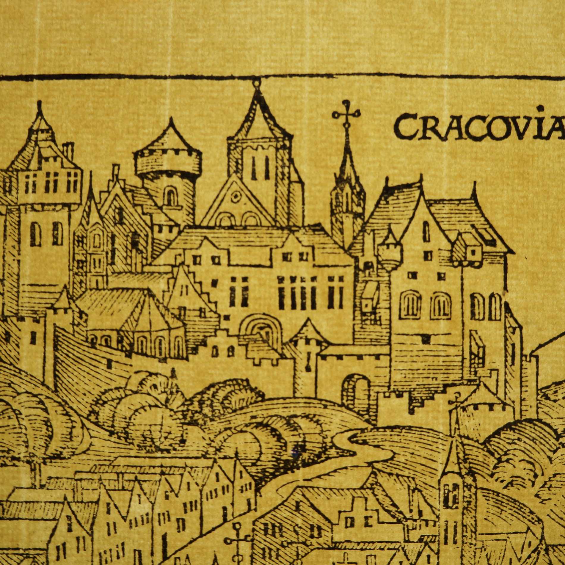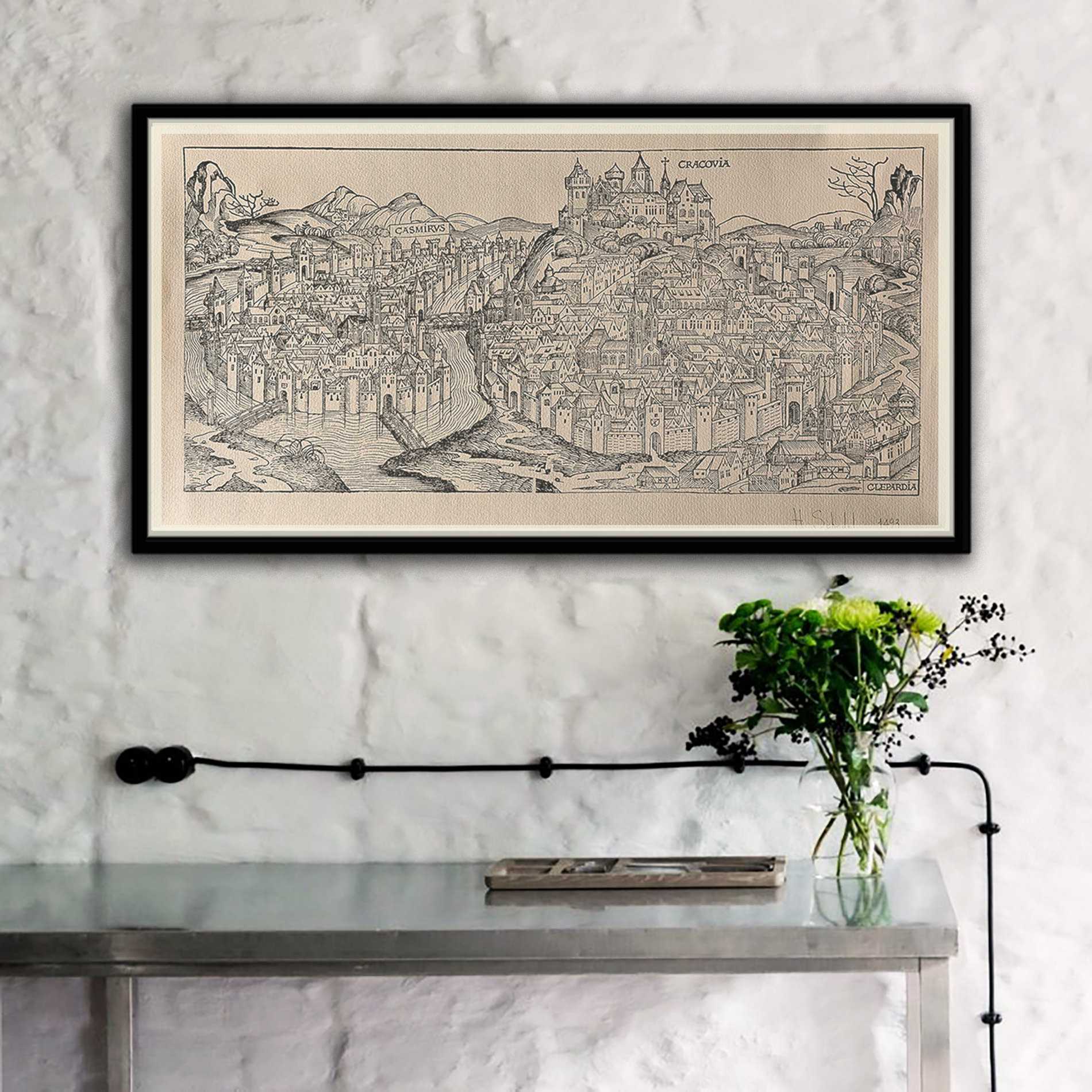 Галоўная Мапы Гравюра Кракаў. Гартман Шэдэль. 1493 год